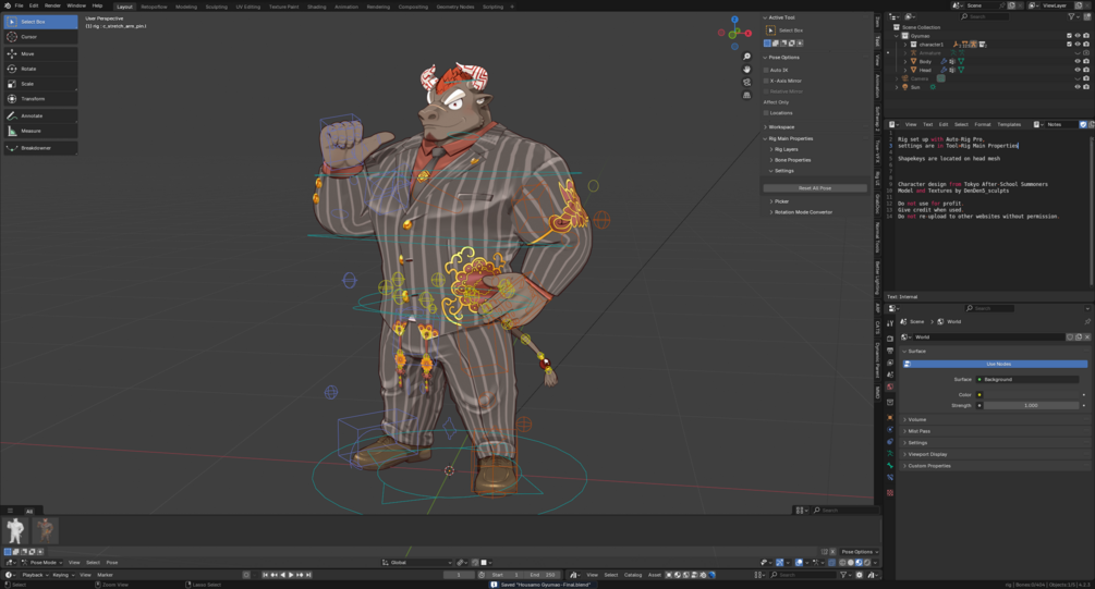 Rigged character model .blend of Gyumao